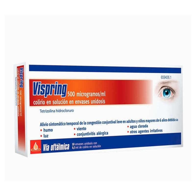 - Descongestivo ocular. Adrenérgico, actua produciendo vasoconstricción a nivel conjuntival y como consecuencia disminución de la congestión conjuntival. Los efectos duran 6 horas aproximadamente.