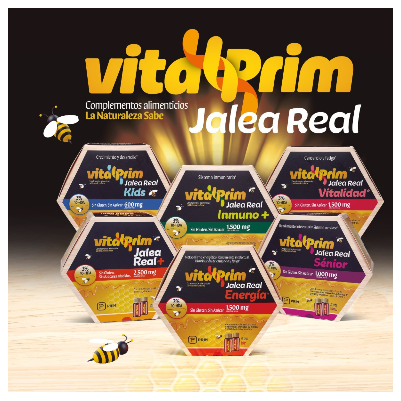Más informaciónVitalprim Jalea Real Inmuno+ es un complemento alimenticio formulado con una cuidada combinación de jalea real, propóleo glicerinado, vitaminas y zinc, ingredientes tradicionalmente utilizados en épocas de mayor desgaste físico o cambios estacionales.