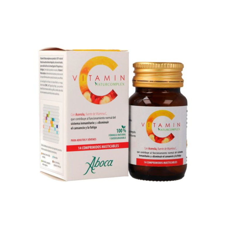 Suplemento alimenticio de Vitamina C masticable de Aboca, diseñado para reforzar las defensas naturales y aportar vitalidad diaria.