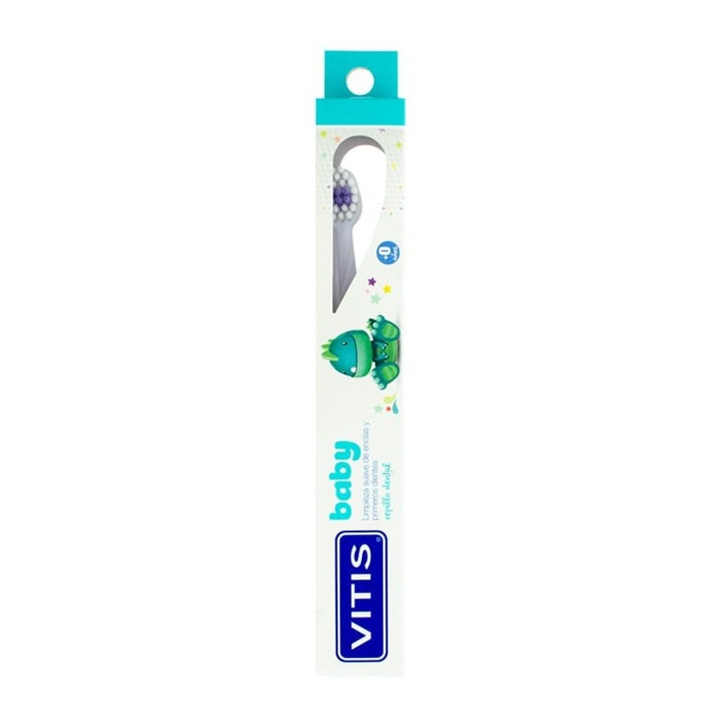 El cepillo dental VITIS Baby es un instrumento diseñado especialmente para la higiene bucal de los bebés a partir de los 0 meses, con cerdas suaves y un cabezal adaptado a su delicada boca.