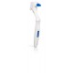La forma ergonómica del mango y las estrías antideslizamiento ofrecen un fácil y cómodo uso, además de una sujeción firme que permite el máximo control durante la limpieza de la prótesis.