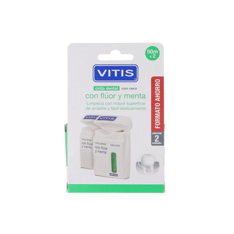 La cinta dental VITIS con flúor y menta es una herramienta eficaz para la limpieza interdental. Presentada en un pack duplo, ofrece una limpieza profunda y frescor duradero para una higiene bucal completa.