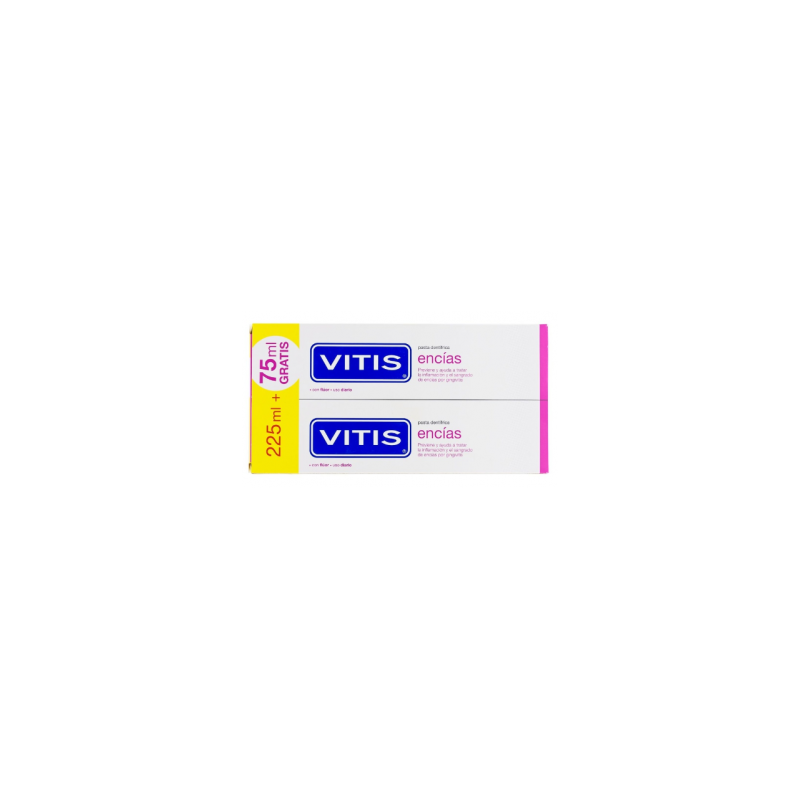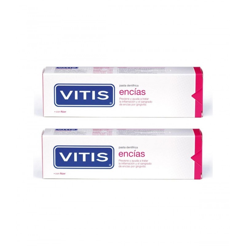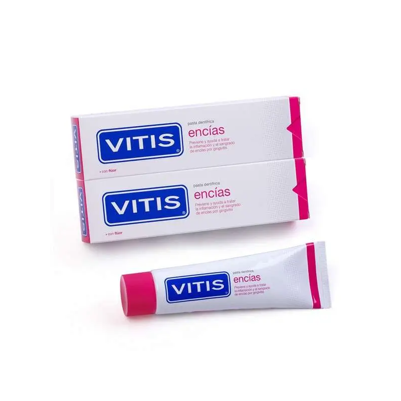 Más informaciónVITIS Encías Pasta Dentífrica, en su presentación de 2 x 150 ml, está diseñada para ofrecer un cuidado bucal especializado, enfocado en la salud de las encías. Esta pasta dentífrica cuenta con una fórmula avanzada que combate la placa bacteriana, principal causante de la gingivitis, y ayuda a reducir la inflamación y el sangrado de encías. Gracias a la combinación de ingredientes activos como el cloruro de cetilpiridinio, pantenol y el lactato de zinc, VITIS Encías no solo previene los problemas gingivales, sino que también fortalece las encías y refuerza la protección del esmalte dental. Además, su acción calmante y su sabor suave hacen que sea ideal para el uso diario, asegurando una sensación de frescura y limpieza duradera. El formato doble de 150 ml es perfecto para el uso prolongado, asegurando una rutina de higiene bucal completa y eficaz.