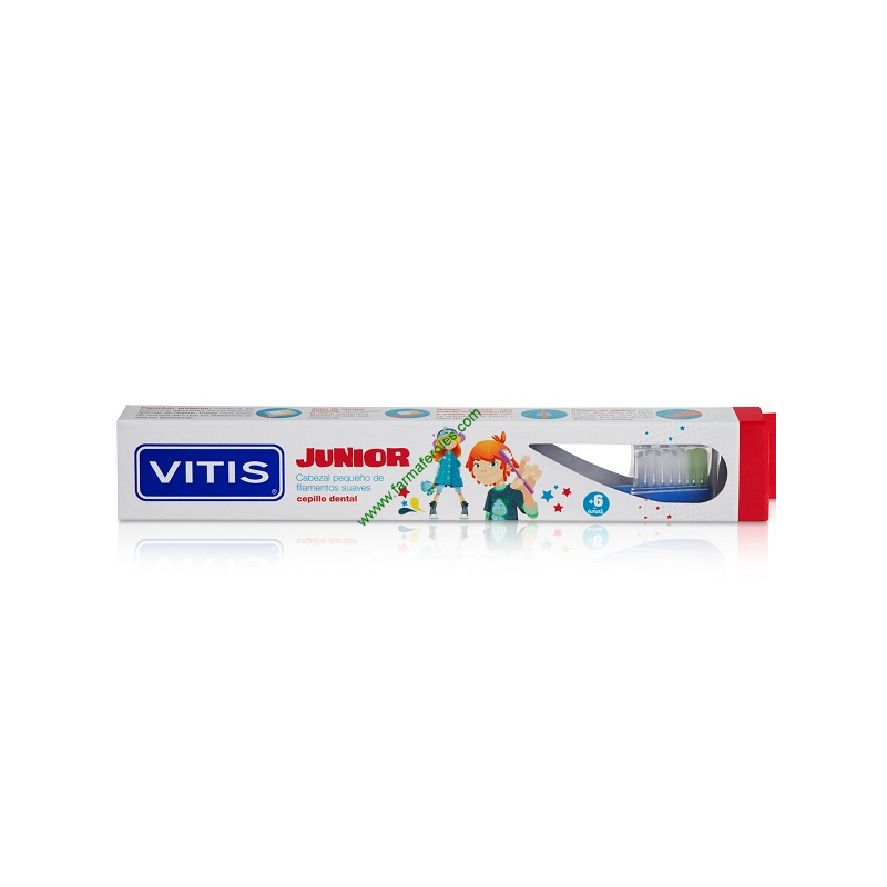 El cepillo dental vitis Junior +6 está diseñado específicamente para niños mayores de 6 años, ofreciendo una limpieza completa y suave para sus dientes en desarrollo.