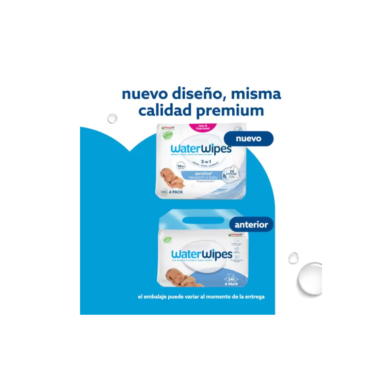 WATERWIPES BEBE 4 ENVASES 60 UNIDADES PACK ECONOMICO
