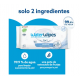 Toallitas limpiadora triple acción (limpia, cuida y protege) para bebés con fórmula mínima y suave, ideales para pieles sensibles.