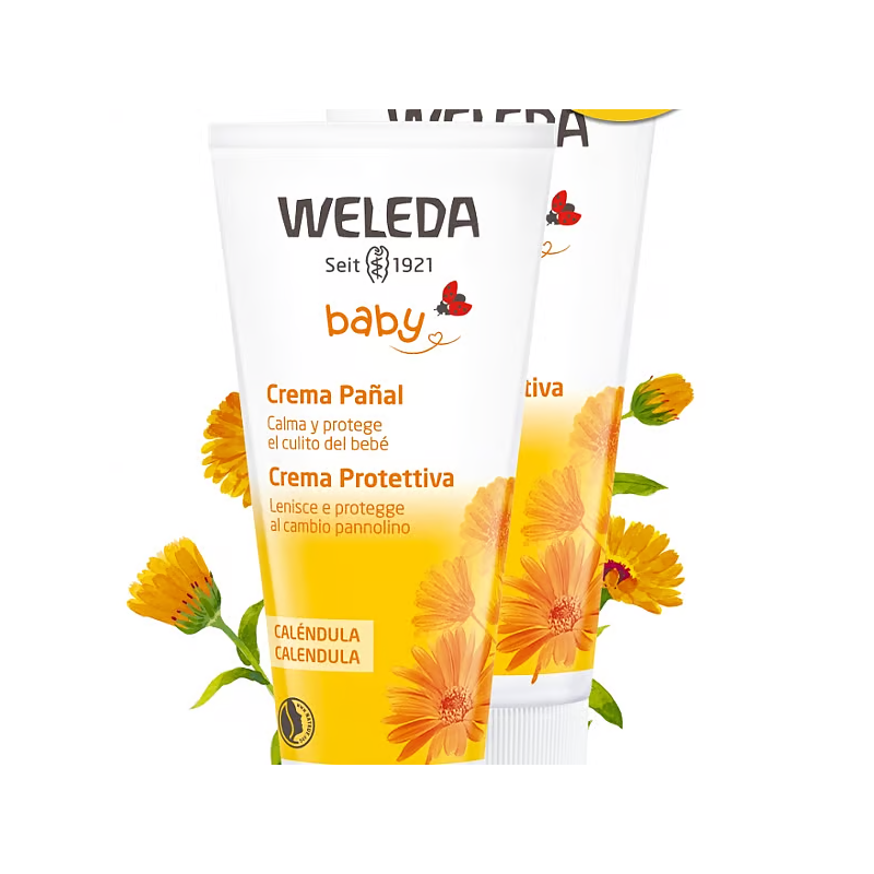Duplo que incluye la 2ª unidad al 50% de la Weleda Crema Pañal protectora (2x75 ml), formulada a base de caléndula e ingredientes naturales.