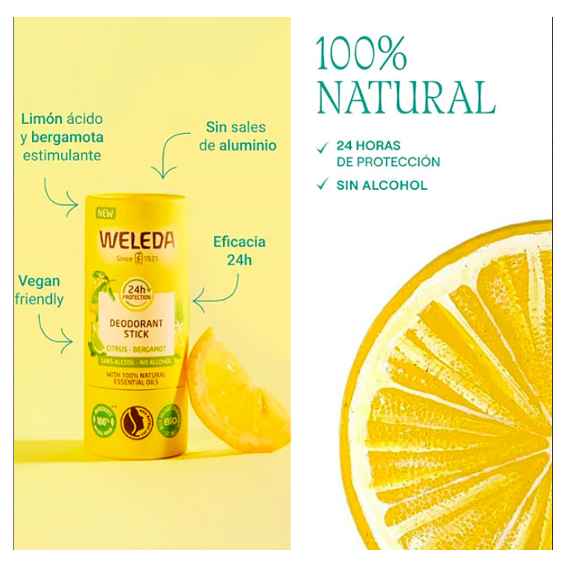 Weleda Desodorante Stick Citrus Bergamota ofrece una protección eficaz y suave para las axilas con una fragancia fresca y natural a cítricos.