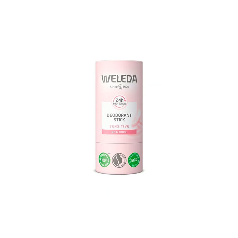 Desodorante natural en stick especialmente formulado para piel sensible, que neutraliza el mal olor y protege la piel sin irritarla, con fórmula sin alcohol ni sales de aluminio.