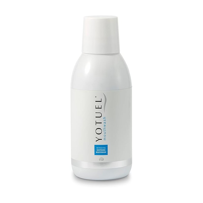 Yotuel Colutorio Blanqueador 250ml es un enjuague bucal blanqueador formulado para mantener la blancura natural de los dientes y mejorar la higiene bucal. Protege contra las manchas diarias, refuerza el esmalte y previene la acumulación de placa bacteriana.