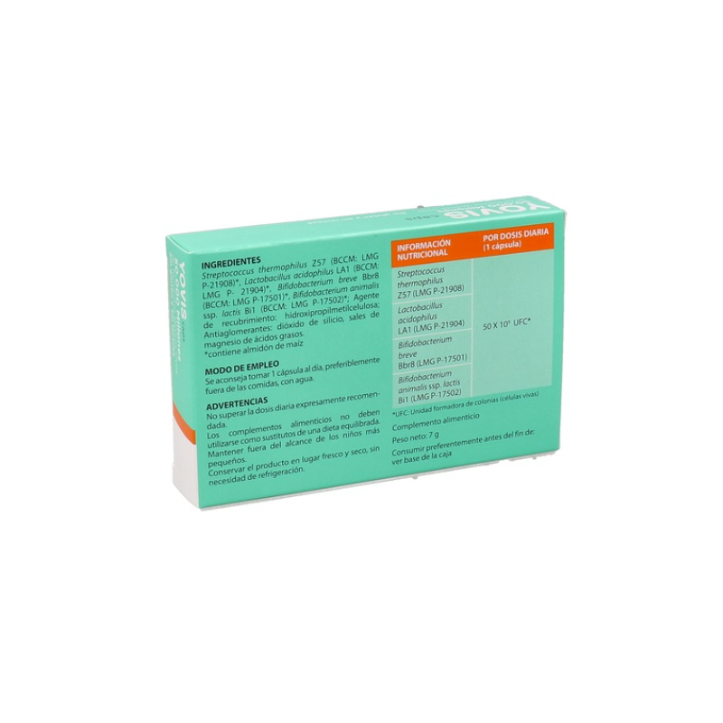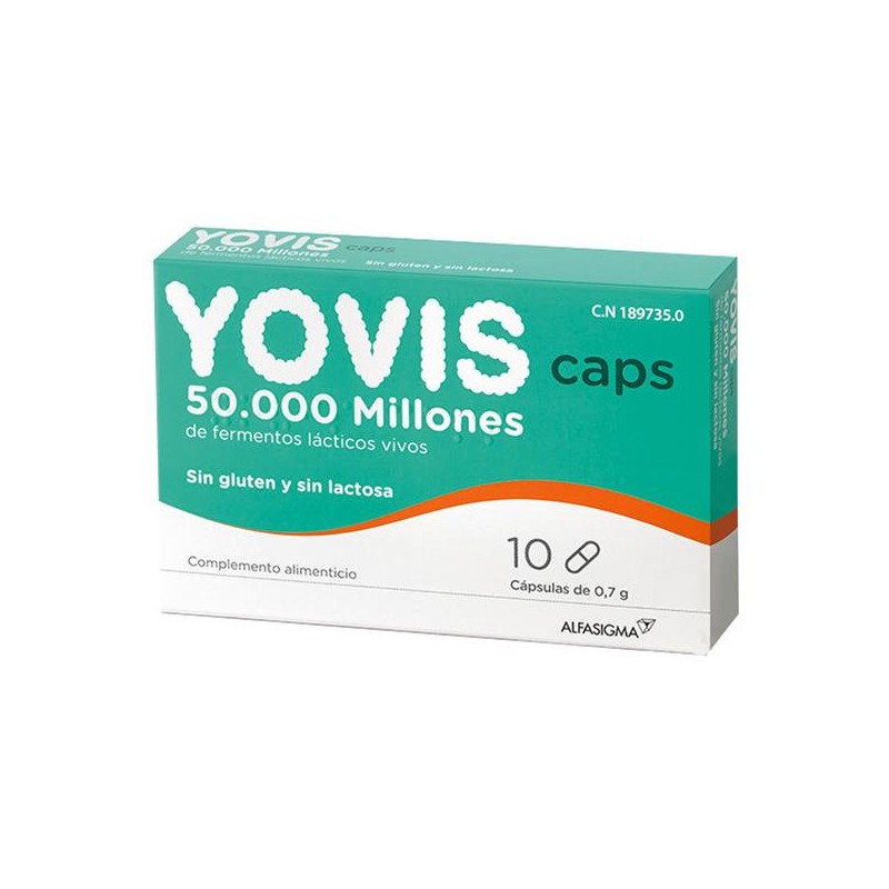 Yovis 10 cápsulas es un suplemento a base de fermentos lácticos vivos (probióticos) que contribuyen a mantener la salud de la microbiota intestinal. Cada cápsula contiene mil millones de bacterias beneficiosas, pertenecientes a distintas cepas como Streptococcus thermophilus, Bifidobacterium lactis y Lactobacillus acidophilus, seleccionadas por su eficacia en promover el bienestar digestivo y fortalecer las defensas naturales del organismo.