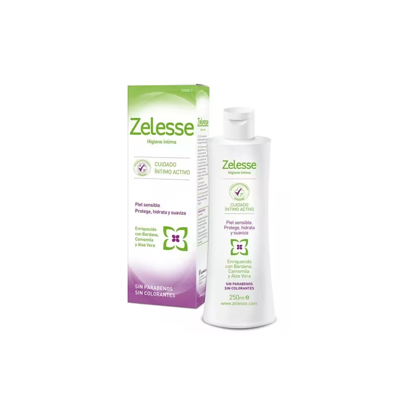 Zelesse es una solución limpiadora sin jabón para la higiene íntima femenina, enriquecido con camomila, bardana y aloe vera, aportando higiene, protección e hidratación a la vez que suaviza la zona íntima.