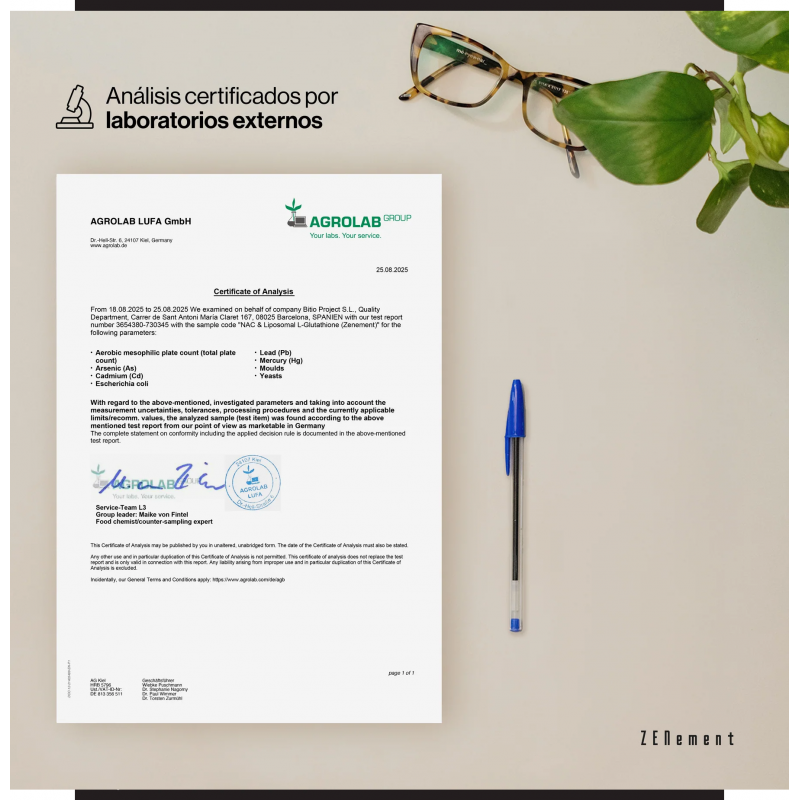 Leer másZenement NAC & Liposomal L-Glutathione Reducido es un suplemento de última generación formulado con N-acetilcisteína (NAC), un potente precursor del glutatión, y glutatión liposomal reducido, una forma más estable y biodisponible de este antioxidante crucial para el cuerpo. Juntos, ofrecen una potente acción detoxificante y protectora contra el estrés oxidativo, ayudando a mantener una función hepática saludable y apoyando la regeneración celular.