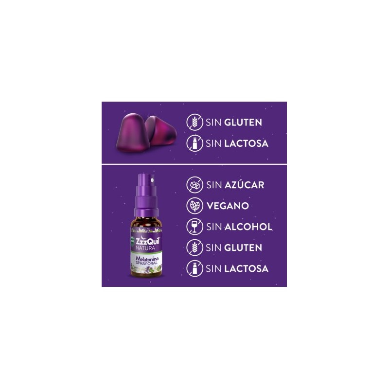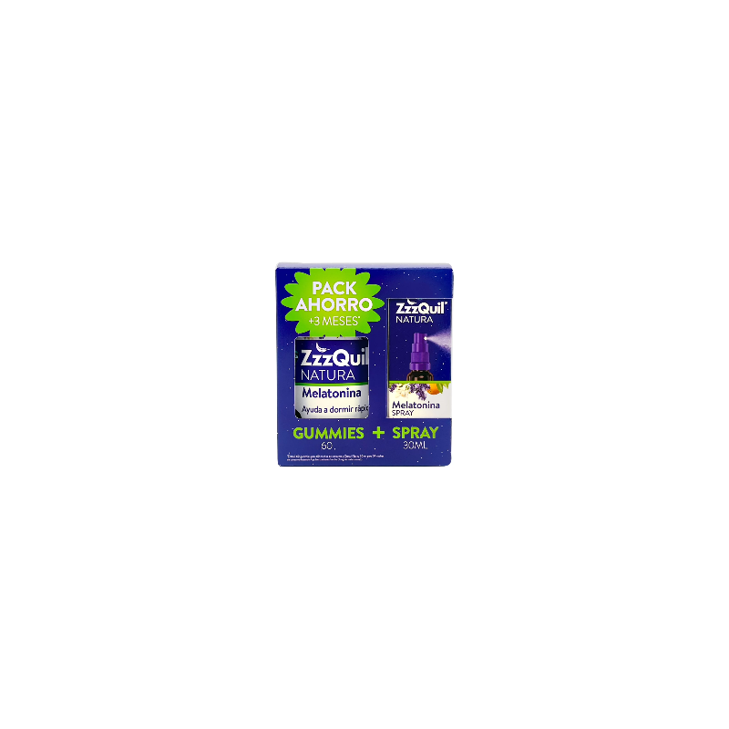 ZZZQUIL NATURA PACK SABOR FRUTAS BOSQUE 60 GUMMIES + SPRAY 30 ML